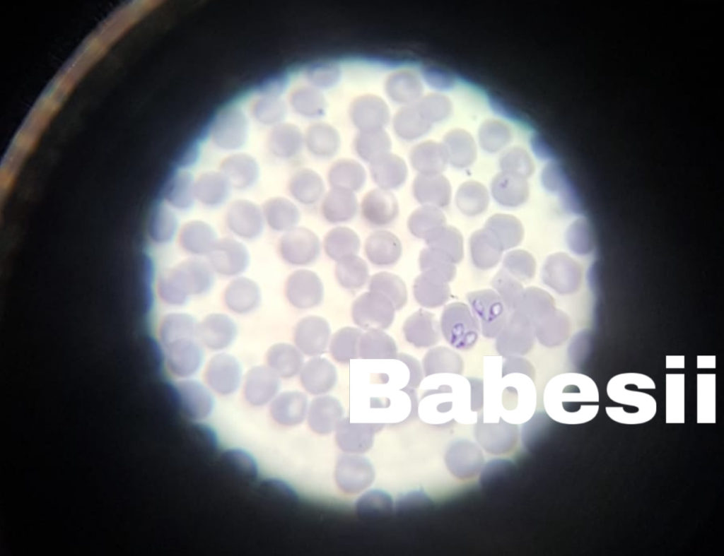 - la examinarea microscopică nu se reușește evidentțierea parazitului, dar animalul are semne clinice ce indică Babesioza